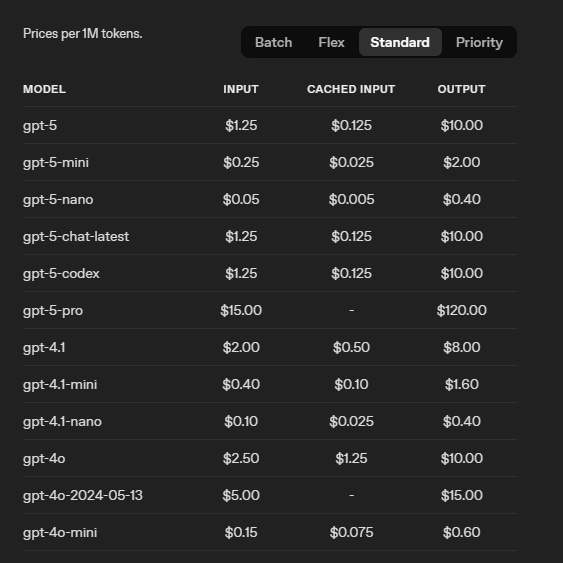 Looking at the pricing for OpenAI, we can now understand why it’s so cheap to run most interactions on 4o mini, which performs no thinking. The cost per million tokens is 20 times less when directly using the model through a developer API.